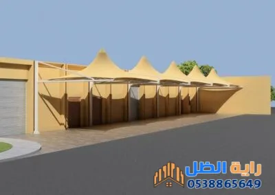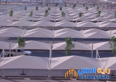 - مظلات مواقف سيارات المصلين بتصاميم "الكابولي" المتينة.