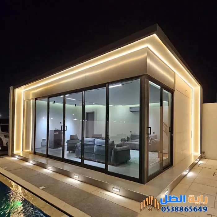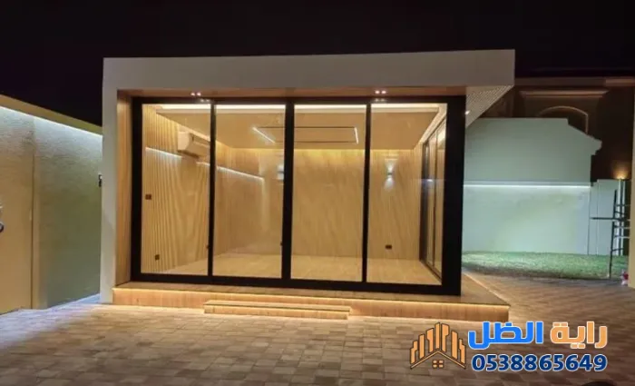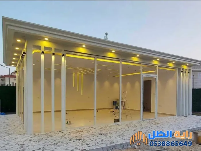 - سرعة التنفيذ (الجاهزية): المجالس الجاهزة توفر عناء البناء التقليدي والترميم الطويل؛ حيث يتم تركيب الهياكل المعدنية والزجاج في وقت قياسي.