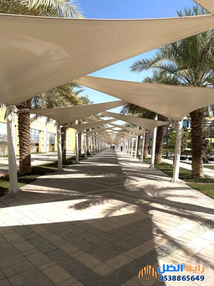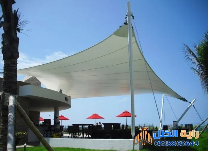- أنواعها المفضلة: تترصدر مظلات "الكابولي" و"الإكس" القائمة بمواد قماشية مثل PVC الألماني والكوري، أو الـ PVDF المقاوم للحرائق والأتربة.