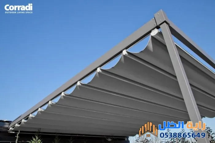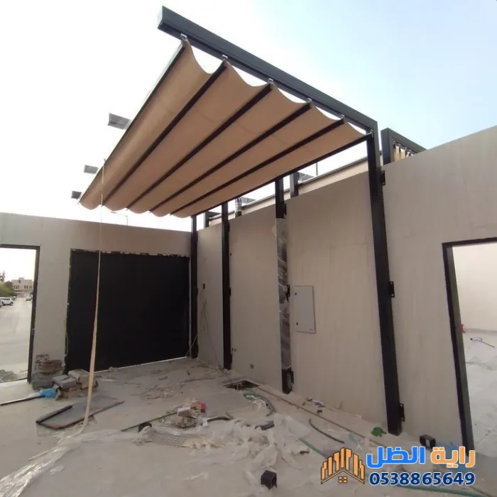 - تنوع المواد: تتوفر بخامات قماشية مقاومة للمطر أو شرائح الألمنيوم (البرجولات المتحركة) التي تسمح بالتحكم في نسبة دخول الضوء والتهوية.