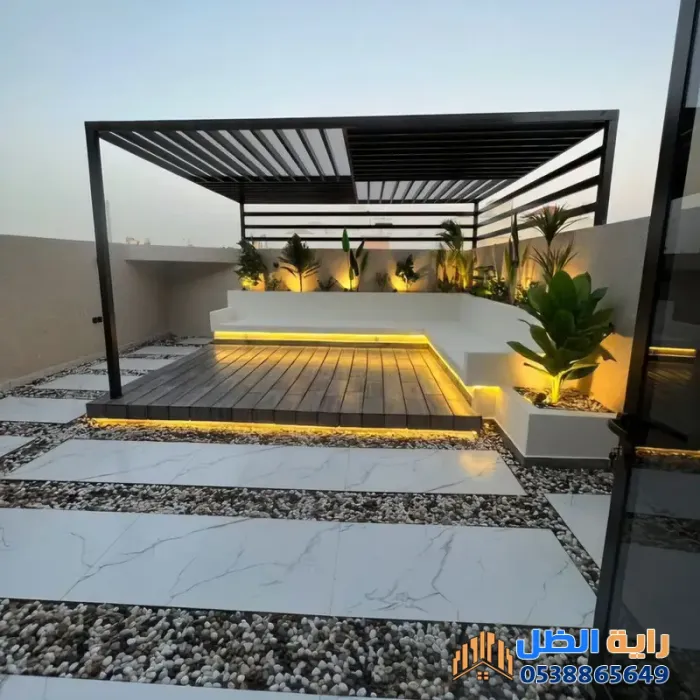 - المظلات والبرجولات: لحماية الجلسة من الشمس المباشرة وإعطائها طابعاً خاصاً.