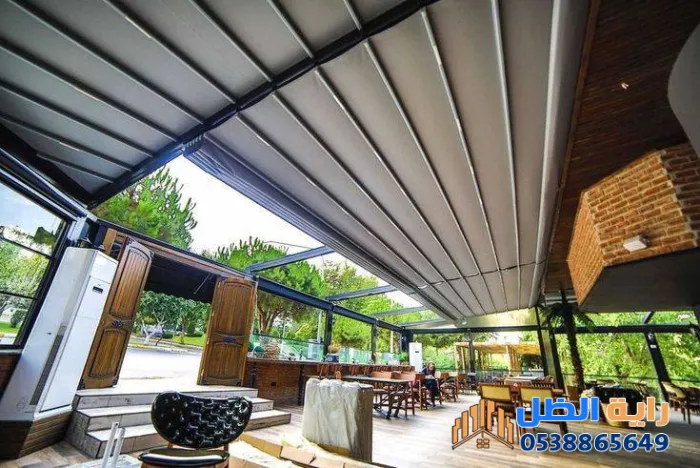 تعتمد على أنظمة التحكم عن بُعد، حيث يمكنك فتح وإغلاق السقف القماشي أو "اللوفرز" الألمنيوم بلمسة زر، مما يمنحك تحكماً كاملاً في كمية الضوء والتهوية.