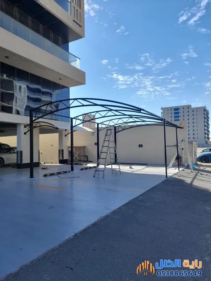 تعتبر من أكثر الخدمات طلباً لحماية السيارات من تلف الطلاء والمحرك بسبب الحرارة. تتوفر بأشكال (مخروطي، كابولي، قوسية).2. مظلات الجلسات والبرجولات
