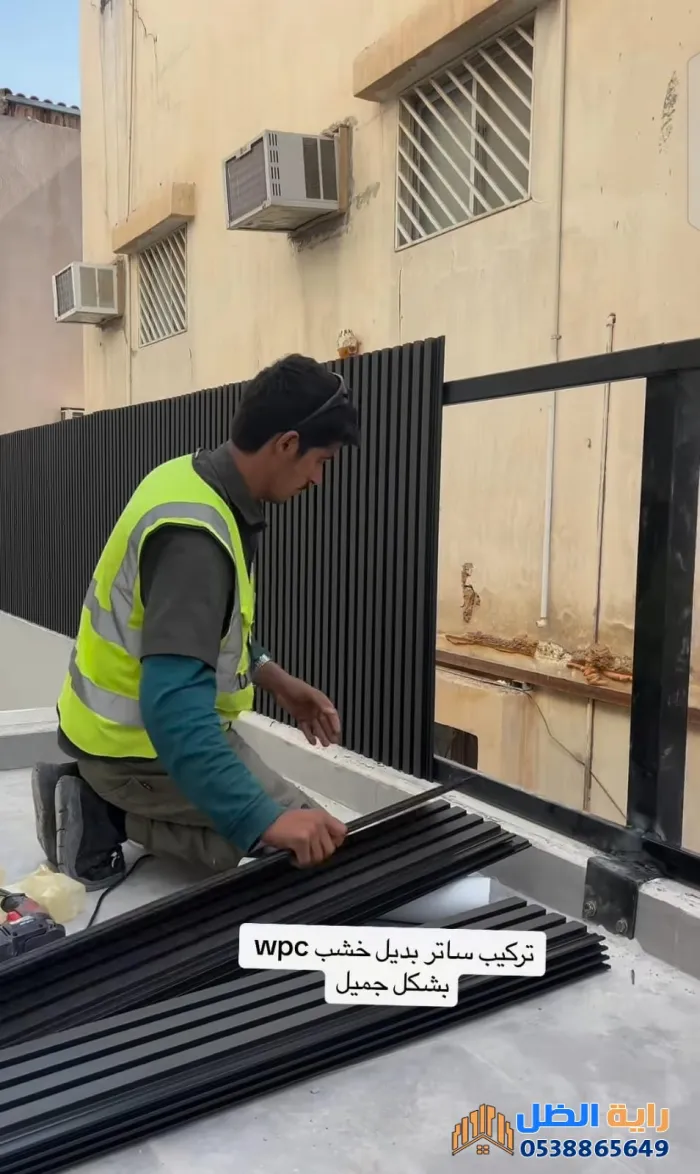 تُصنع عادة من الخشب البلاستيكي (WPC) المعالج المقاوم للرطوبة والتآكل:- سواتر خشب شرائح: تمتاز بحجب الرؤية تماماً ومقاومة الصدأ.