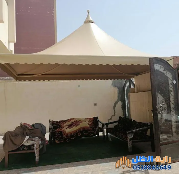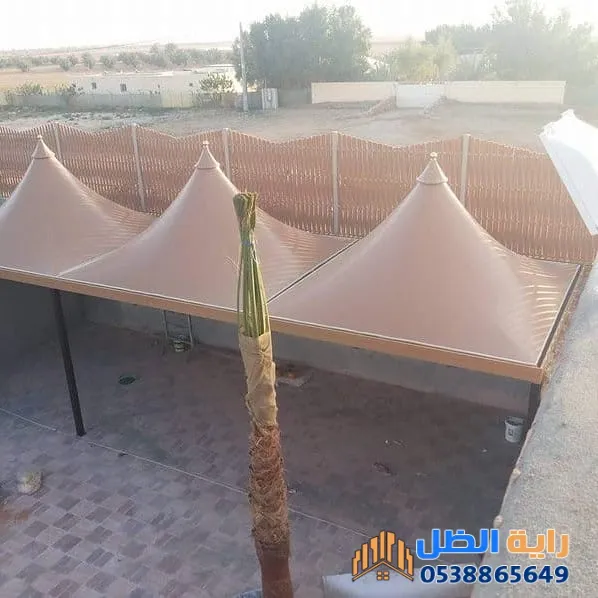 - شدادات الضغط: في المظلات الكبيرة، يفضل إضافة شدادات جانبية لامتصاص اهتزازات الرياح العاتية.